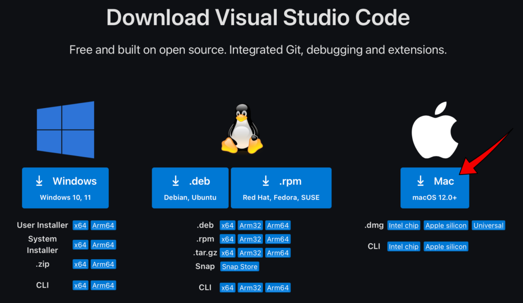 First, open your web browser (such as Safari, Google Chrome, or Firefox) and go to: https://code.visualstudio.com/download