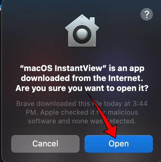 MacOS may show a security prompt asking you to confirm opening an app downloaded from the internet. Click “Open”to continue.