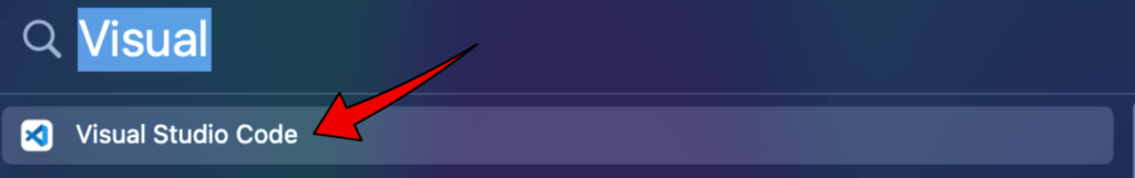 Press Command (⌘) + Space to open Spotlight Search, then type “Visual Studio Code” and click on the VS Code icon from the results.